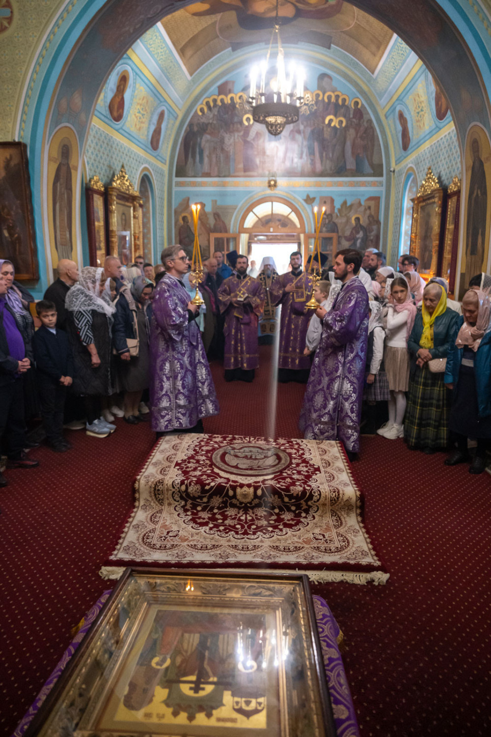 27 сентября была совершена Божественная Литургия, которую возглавил настоятель храма протоиерей Иоанн в сослужении клирика иерея Игоря Жинкина и клирика Смоленского собора иерея Сергия Борчука. По окончании Литургии был совершен крестный ход с Животворящим Чудотворным Крестом Господним.